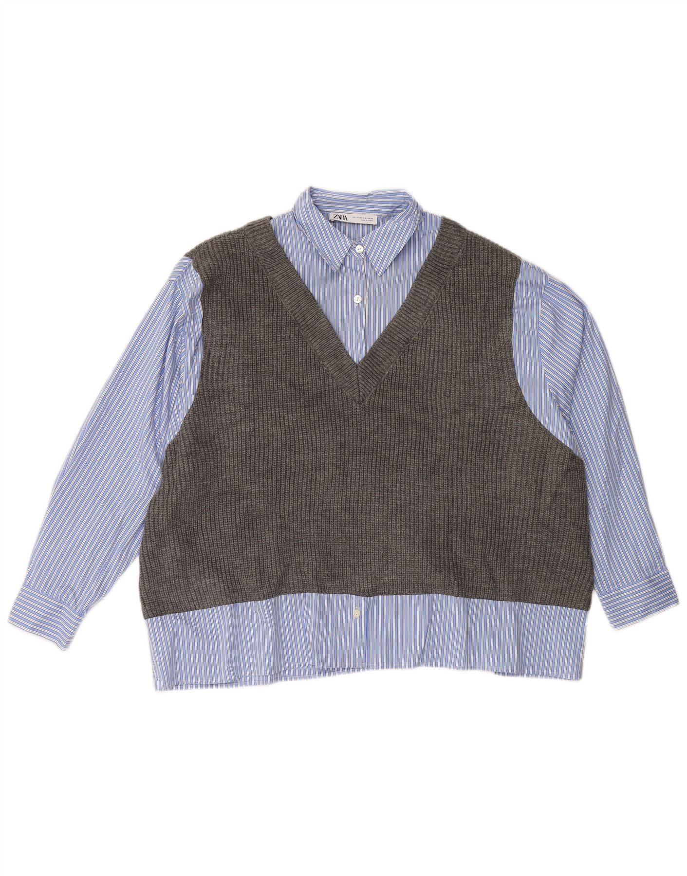 ZARA Maglia Canotta Oversize da Donna in Maglia UK 6 XS Blu a Righe