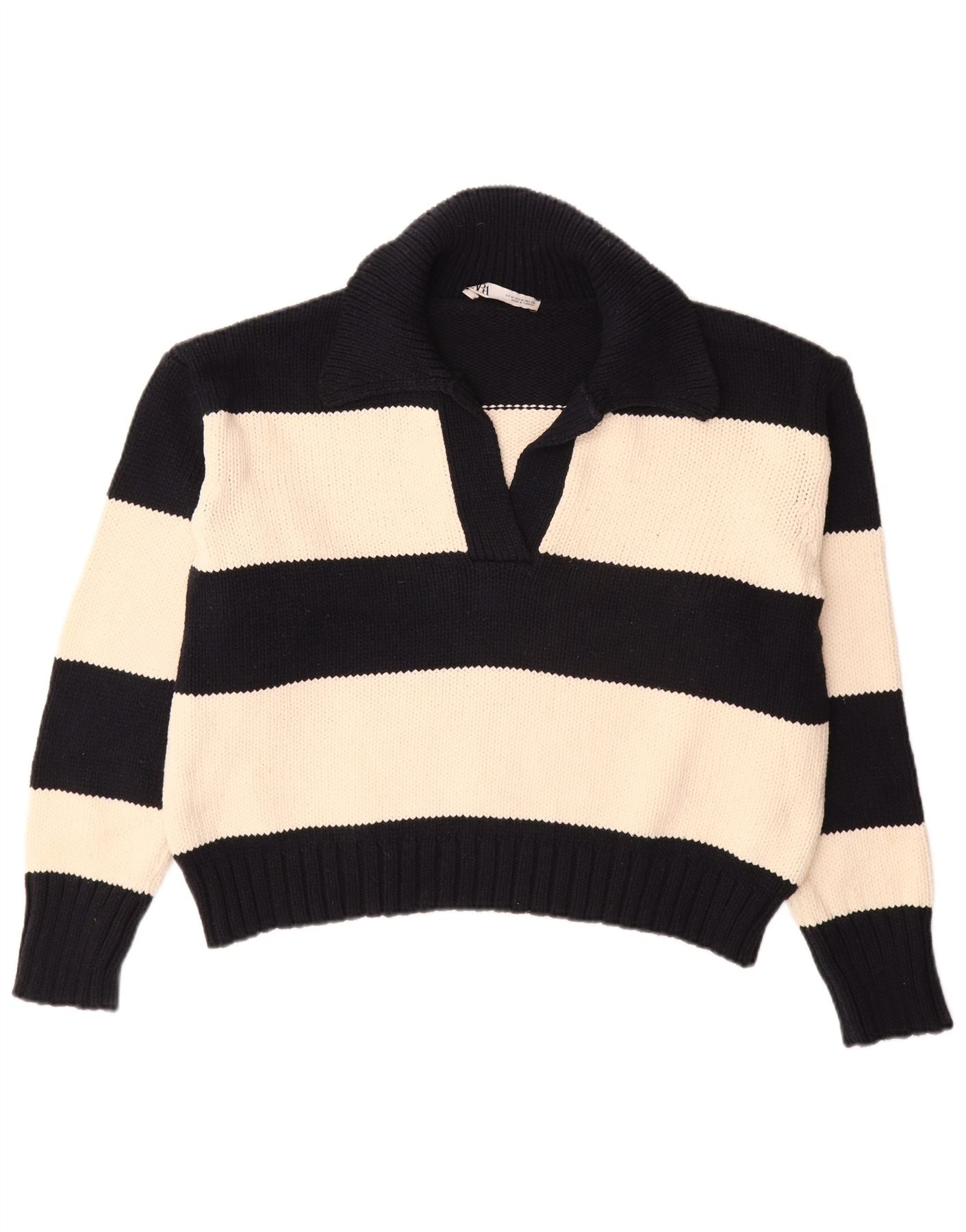Maglione ZARA da donna oversize con collo a polo UK 14 medio a righe nere