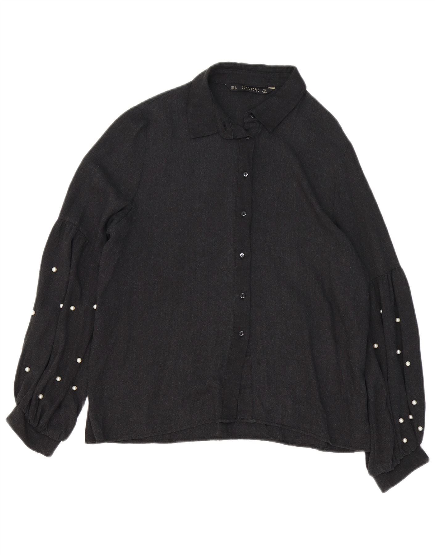 ZARA Womens Oversized Shirt Blouse UK 10 Small Grey Viscose
