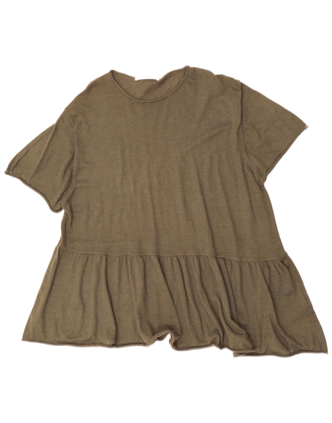 ZARA Abito Maglione Oversize a Maniche Corte da Donna UK 14 Medio Cachi