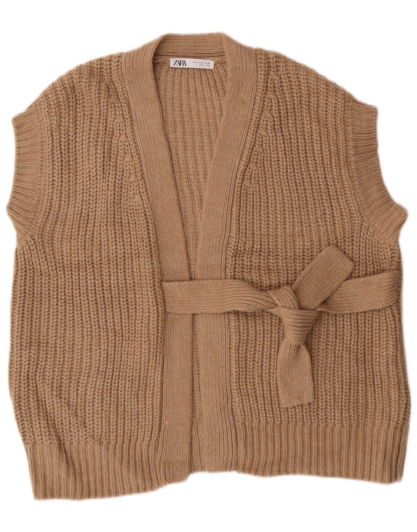 Maglione cardigan senza maniche oversize da donna ZARA UK 10 piccolo marrone