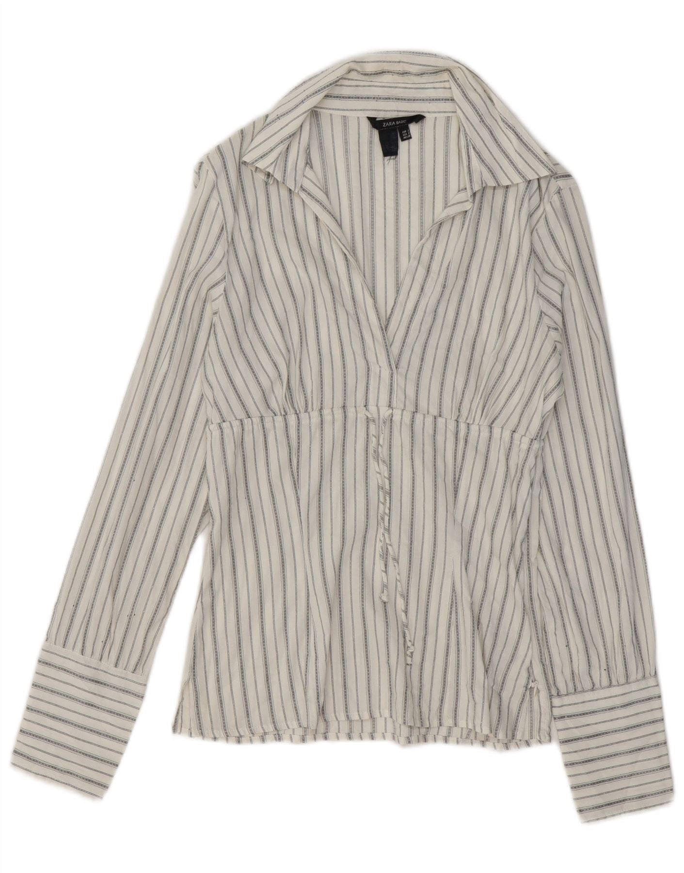 ZARA T-shirt Uomo Top Small in Cotone a Righe Beige