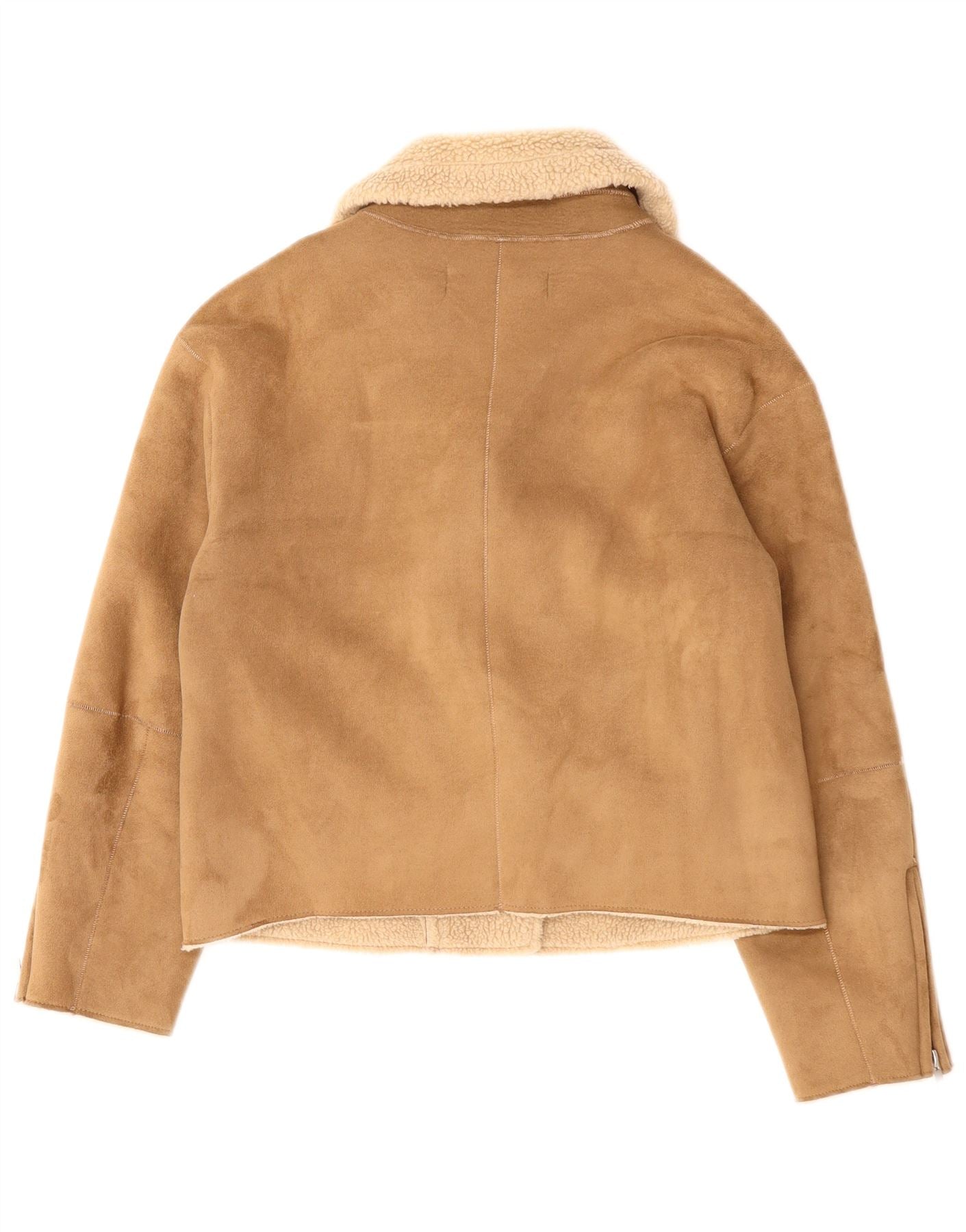 Giacca da motociclista in pelle scamosciata sintetica Sherpa da donna Zara UK 10 piccola in poliestere beige
