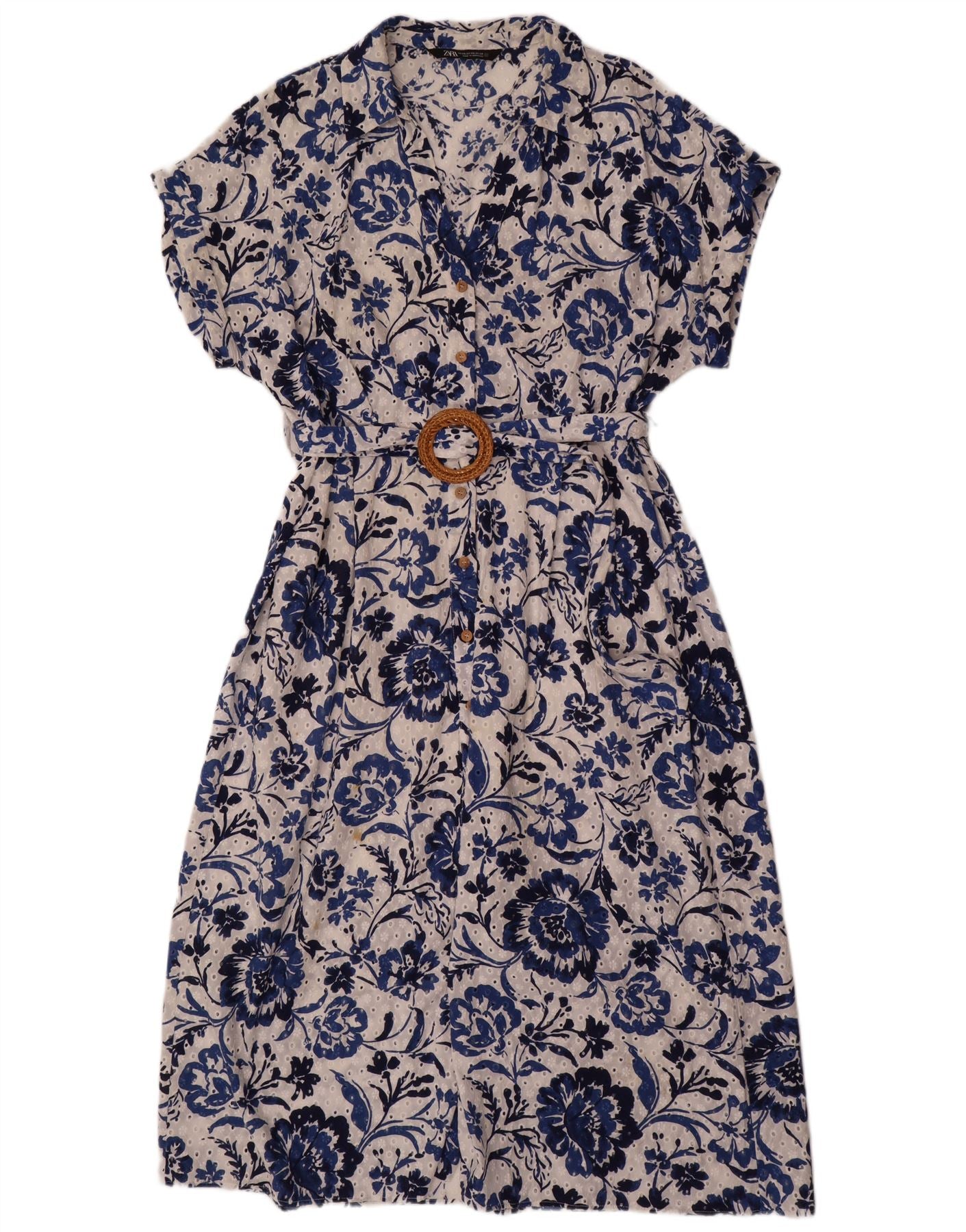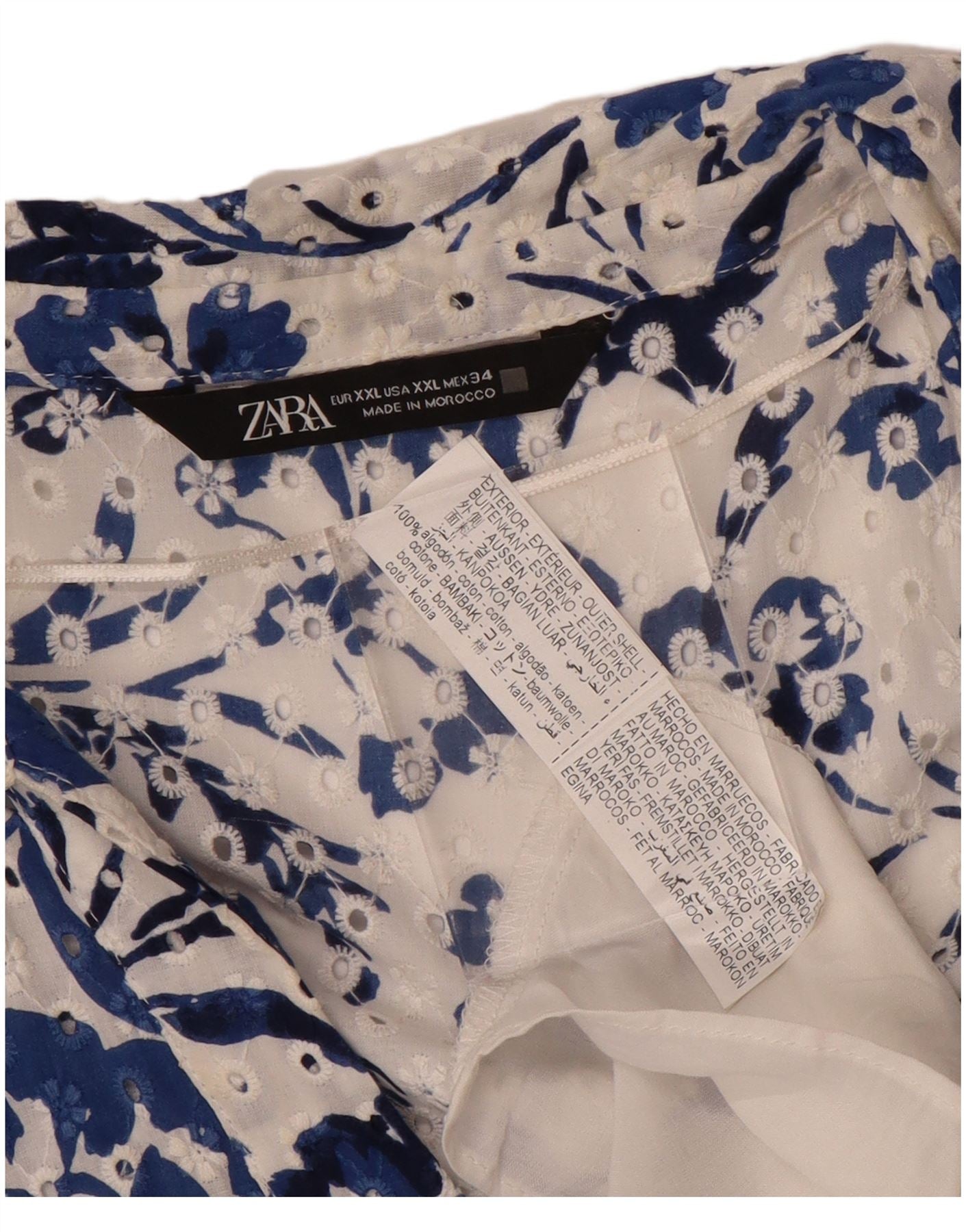 Abito lungo da donna a maniche corte ZARA UK 20 2XL cotone floreale blu