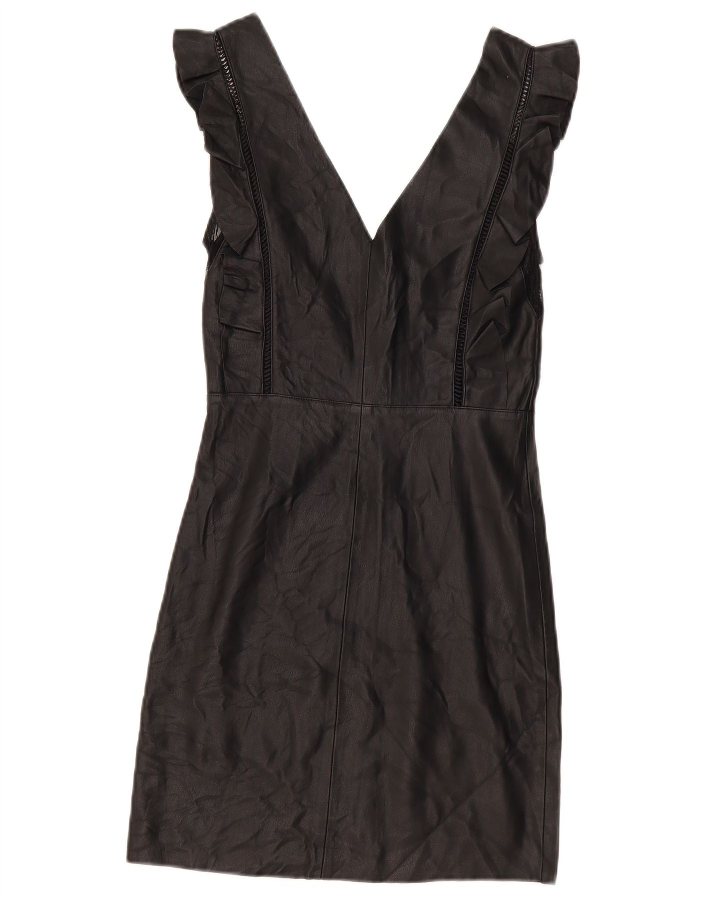 Abito tubino in pelle senza maniche ZARA da donna UK 4 XS Nero