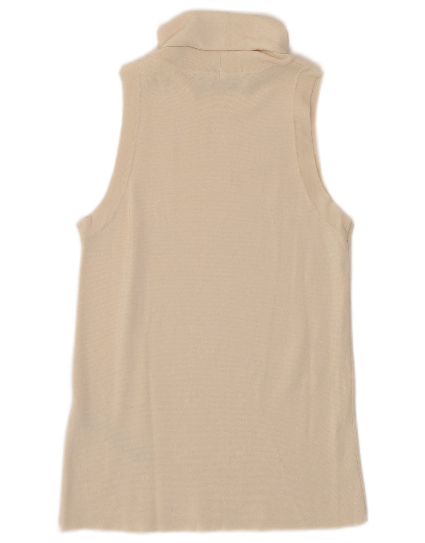 ZARA Womens Sleeveless Roll Neck Blouse Top UK 12 Medium Beige Viscose