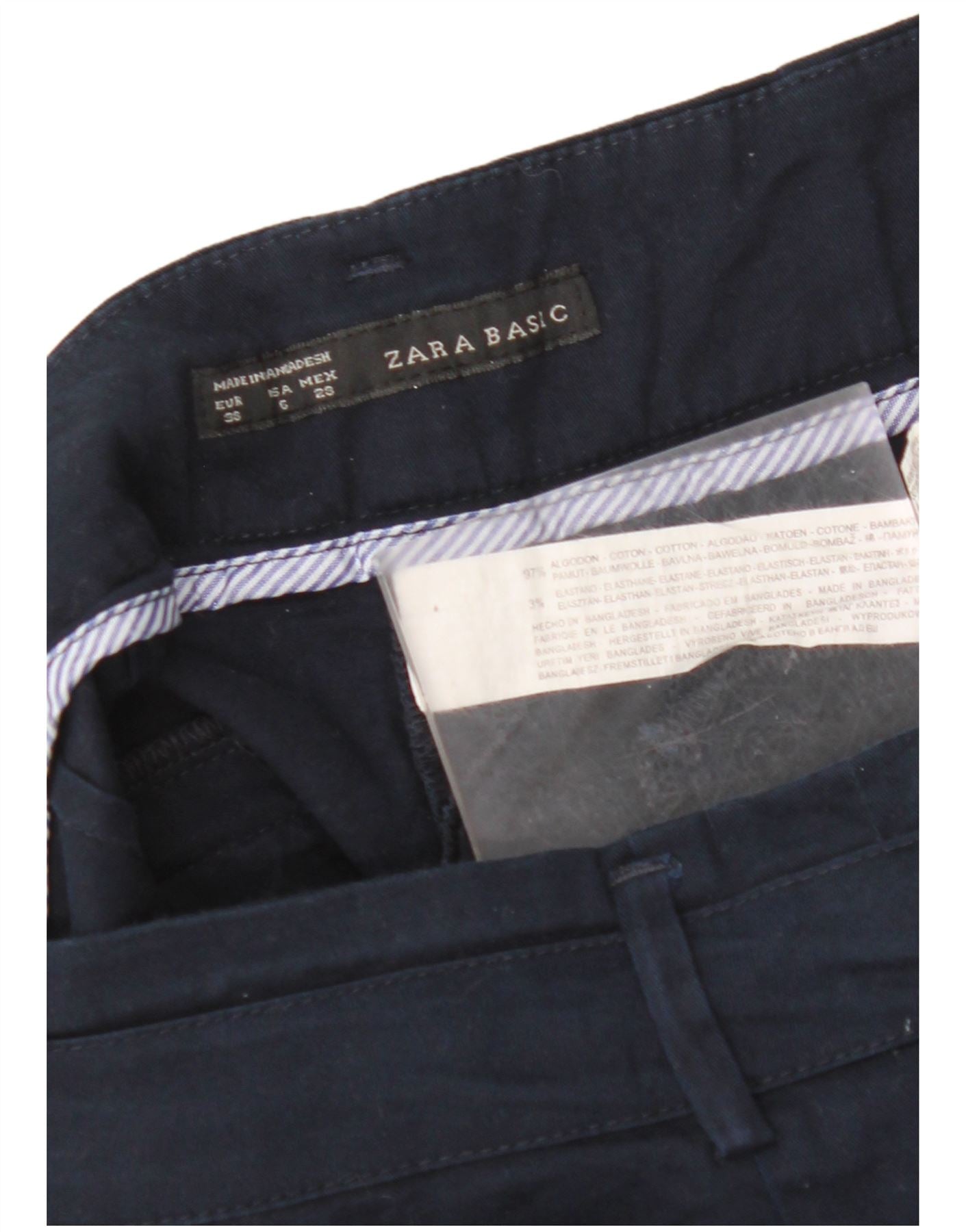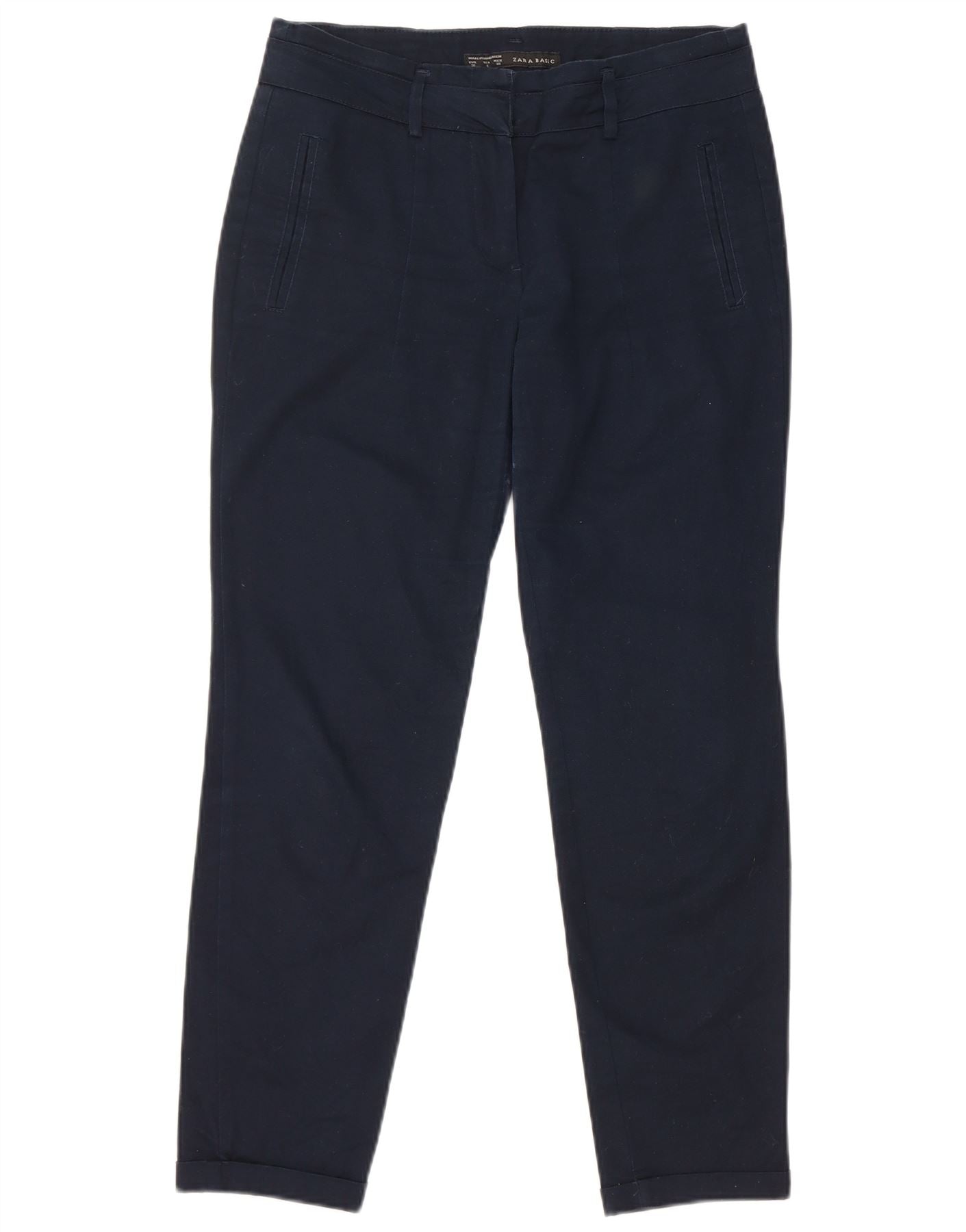 ZARA Womens Slim Cropped Trousers EU 38 Small W28 L27 Navy Blue Cotton