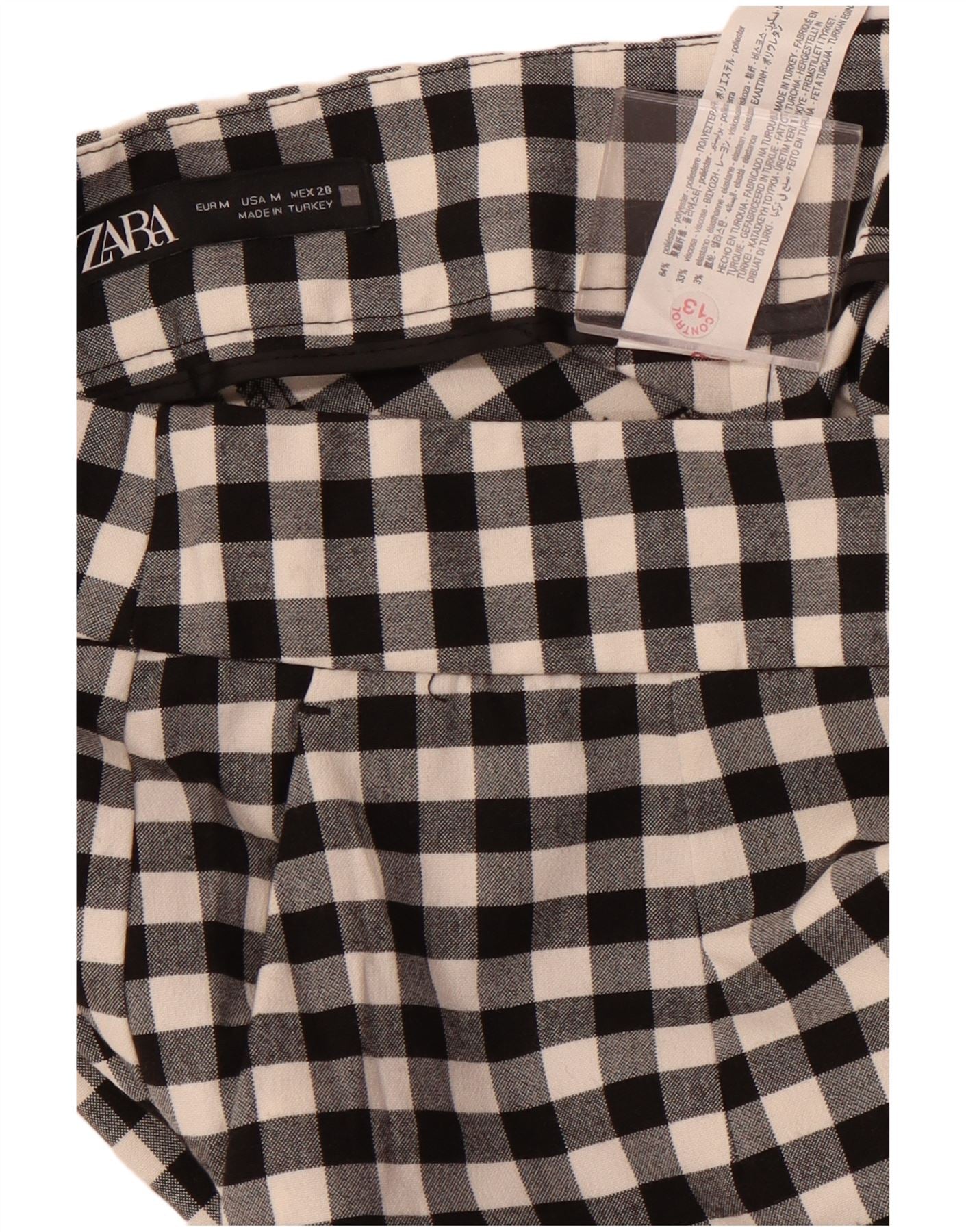 Pantaloni chino affusolati da donna ZARA medi W28 L26 poliestere a quadretti neri