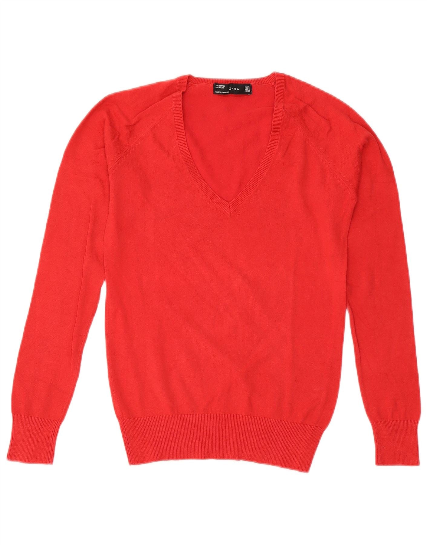 Maglione ZARA da donna con scollo a V UK 10 piccolo cotone rosso
