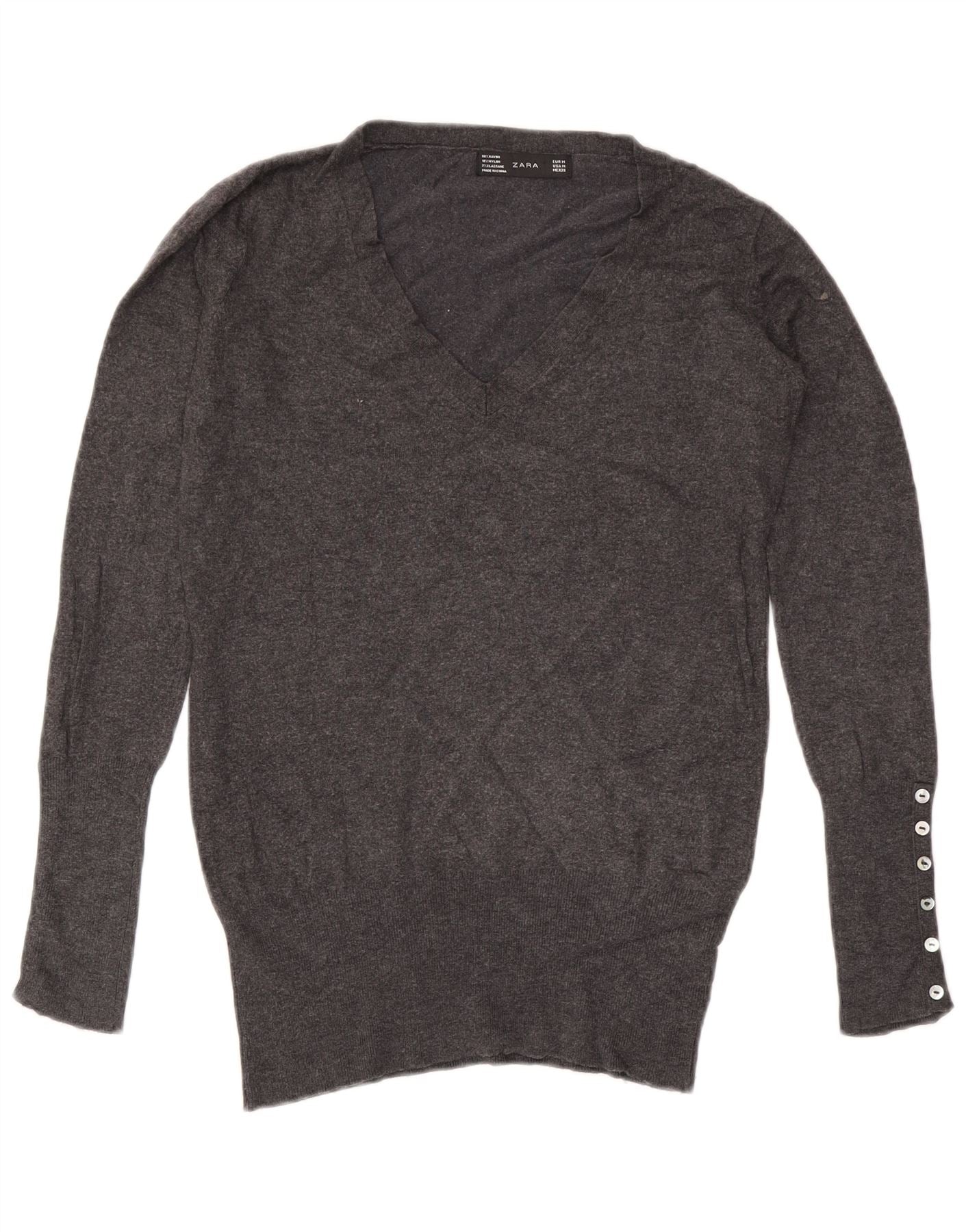 Maglione ZARA da donna con scollo a V UK 14 Rayon grigio medio