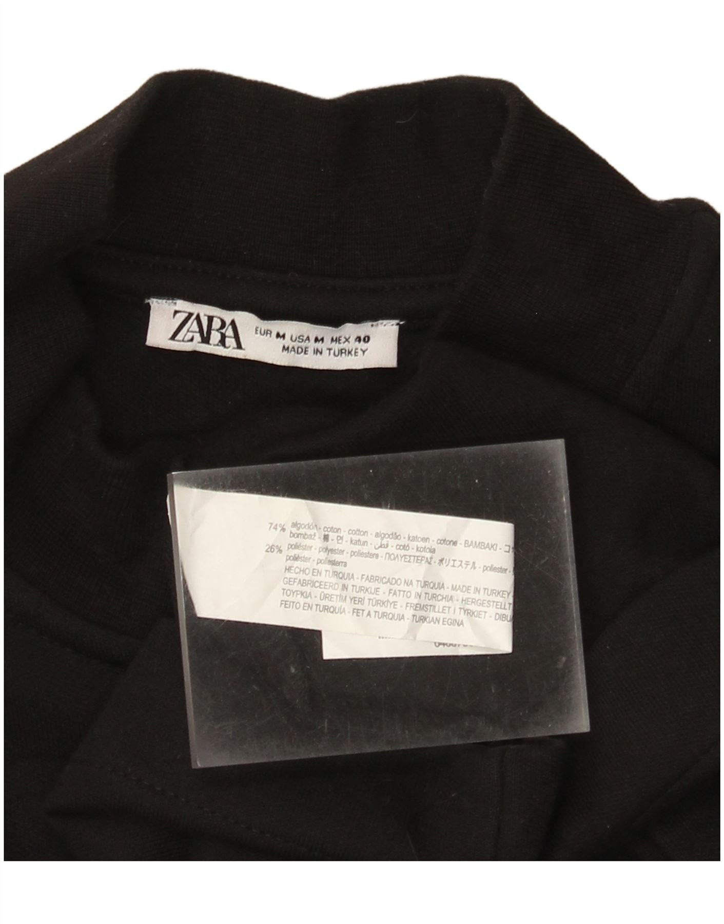 T-shirt Zara da donna con collo e zip, taglia UK 14, cotone nero medio